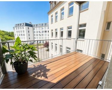 Besonders beeindruckend sind die außergewöhnlich großen Zimmer, die der Wohnung ein offenes, einladendes Flair verleihen. Die gut geschnittene Küche bietet ausreichend Platz für gemeinsame Kochabende mit der ganzen Familie und verfügt über einen direkten Zugang zum Balkon mit Blick auf den MDR-Turm.