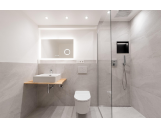 •Großformatige Feinsteinfliesen im Bad
