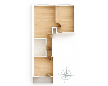 Durch die Neuaufteilung ist eine großzügige 3-Zimmer-Wohnung mit offener Wohnküche entstanden, ideal für alle, die modernes Wohnen mit klaren Linien und hellen Räumen schätzen. Der offene Wohnbereich bietet Platz für eine stilvolle Küchenzeile sowie einen gemütlichen Ess- und Wohnbereich.