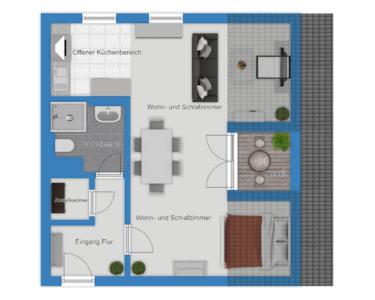 -Großzügiger Wohn-/Schlafbereich (50 m² Gesamtfläche)