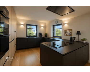 Die moderne, altersgerechte Küche ist funktional und stilvoll gestaltet – ausgestattet mit hochwertigen Materialien, durchdachtem Stauraum und ist im Kaufpreis inbegriffen.