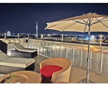 Zum Verkauf wird das höchste Penthouse Münchens mit 2 Panorama-Dachterrassen und einem unglaublichen 360 Grad Blick auf - und über die Stadt München, den Olympiapark und die Alpenkette von Bodensee bis Salzburg angeboten. Das Penthouse im 22. und 23. Stock wurde 2010/2011 komplett neu auf das bestehende Gebäude aufgebaut.