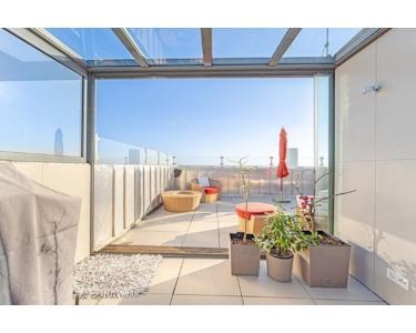Im 23. Stock begrüßt einen der lichtdurchflutete Wintergarten und eine einzigartige Dachterrasse mit einem unvergleichbaren 360 Grad Blick über München bis in die Alpen. Hier könnte man ohne grossen Aufwand noch ein Schlafzimmer und ein Badezimmer errichten.