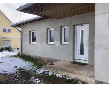 -Der rohe Putz der Außenwand (eingeputzte Wärmedämmung) muss an einigen Stellen ausgebessert werden. Zeitaufwand: 1 Stunde