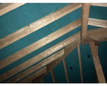 -Die Holzsparren außen sollten geschliffen, lackiert und lasiert werden.