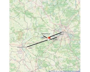 Die Stadt Brandenburg an der Havel liegt ca. 20 km entfernt und bietet ein erweitertes Angebot an Einkaufsmöglichkeiten, Dienstleistern und kulturellen Einrichtungen. Berlin ist innerhalb von 40 Minuten mit dem Auto oder mit dem Zug erreichbar, was die Lage besonders für Unternehmen interessant macht, die von der Nähe zur Metropole profitieren möchten, ohne in einer überlasteten Großstadt umziehen zu müssen.