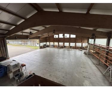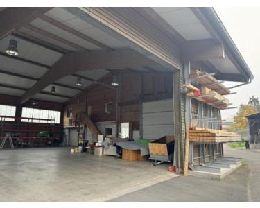 Die Gewerbeimmobilie verfügt über eine vielseitige und praxisorientierte Ausstattung, die sich für eine breite Palette gewerblicher Nutzungen eignet. Die 2002 errichtete Produktionshalle bietet mit ihrem belastbaren Betonboden, der großzügigen Grundfläche und der klaren Raumstruktur ideale Voraussetzungen für Handwerks-, Produktions- oder Lagerbetriebe. Ein separater Lagerbereich sowie ein offenes Holzlager mit rund 280 m² ergänzen die Hauptflächen und schaffen zusätzlichen Stauraum für Materialien, Maschinen oder Fahrzeuge.
