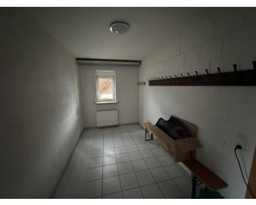 Der angeschlossene Bürotrakt ist funktional angeordnet und ermöglicht durch seine erhöhte Position einen direkten Blick über die gesamte Halle. Dies erleichtert die Organisation und bietet optimale Übersicht über den laufenden Betrieb. Sozial- und Aufenthaltsräume für Mitarbeiter sind ebenfalls vorhanden, inklusive Sanitärbereichen und vorbereiteten Duschmöglichkeiten. Eine integrierte Betriebsleiterwohnung mit ca. 80 m² Wohnfläche erweitert das Nutzungsspektrum und kann flexibel eingesetzt werden.