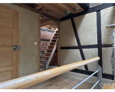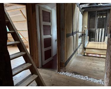 Der Giebelbereich mit Sichtfachwerk ist im Innenbereich noch nicht final überarbeitet und bietet die Möglichkeit, diesen nach eigenen Vorstellungen zu gestalten. Ebenso besteht im Dachspitz weiteres Ausbaupotenzial.