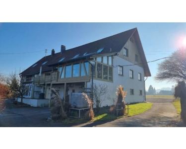 Im Obergeschoss liegt die Hauptwohnung mit schönem großem Wohn- / Essbereich und offener Küche, einer Speisekammer, zwei Schlafzimmer und Bad. Hier befindet sich auch ein Wintergarten und der große Balkonbereich.