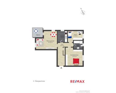 Die Eigentumswohnung im 2. Obergeschoss ist wie folgt aufgeteilt: