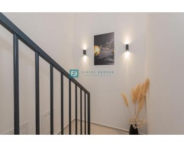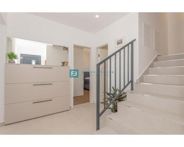 Haus S2 mit einer Gesamtnutzfläche von 135 m2 + Garten 230 m2 (Schwimmbad 21 m2 – Hof – Parkplatz) verfügt über zwei Etagen: Erdgeschoss + erster Stock. Das Erdgeschoss verfügt über einen Flur, ein geräumiges Wohnzimmer, eine Küche und ein Esszimmer, eine Speisekammer, ein Schlafzimmer und ein Badezimmer. Vom Wohnzimmer gelangt man auf eine überdachte Terrasse, die zu einem angelegten Garten und einem 21 m² großen Swimmingpool führt. Eine Innentreppe führt in den ersten Stock, wo sich ein Flur, drei Schlafzimmer, ein Badezimmer und eine Toilette befinden. Zwei Schlafzimmer haben Zugang zu einer 6,55 m2 großen Loggia.