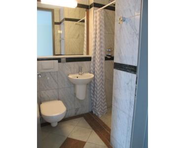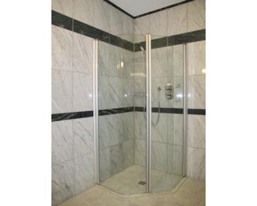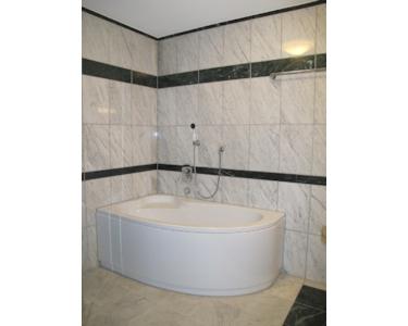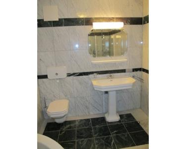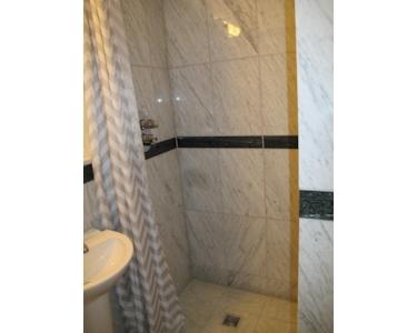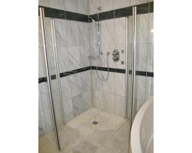 • Klassisch elegantes Marmor-Vollbad mit bodengleicher Dusche