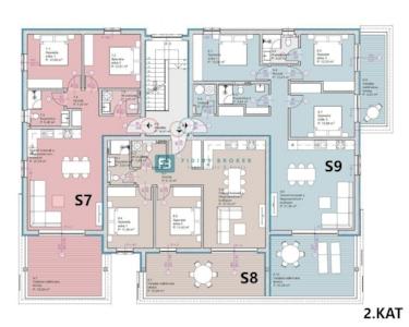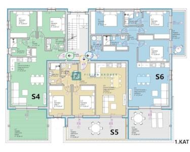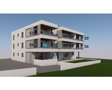 Wohnung S6 befindet sich im 1. Stock und verfügt über eine Gesamtnutzfläche von 111,01 m² (Wohnfläche 92,97 m² + Terrasse 9,20 m² + Terrasse 20,64 m² + Parkplatz 25 m²). Die Wohnung besteht aus einem Flur, drei Schlafzimmern, eines davon mit eigenem Bad und Zugang zu einer 9,20 m² großen Terrasse, einem weiteren Badezimmer, einer Waschküche sowie einer Küche mit Ess- und Wohnzimmer und Zugang zu einer überdachten Terrasse von 20,64 m² mit Meerblick. Zur Wohnung gehören zwei Parkplätze. Preis: 286.600 € (inkl. MwSt. – der Käufer ist von der Grundsteuer in Höhe von 3 % befreit).