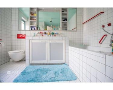 Das Gäste-WC und Badezimmer Ihres Hauses sind raumhoch weiß gefliest.