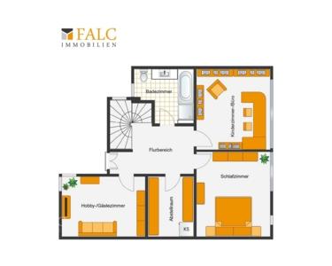 Das Obergeschoss der Immobilie hält 4 weitere Räume zuzüglich Badezimmer bereit.