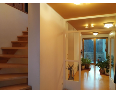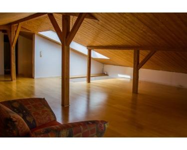 Vom Entreé aus ist das 2008 aufwändig ausgebaute Dachgeschoß über eine massive Ahorntreppe zu erreichen.