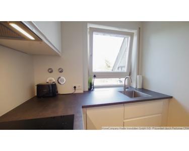 Einbauküche, 4-Zonen Cerankochfeld, Backofen mit integrieter Mikrowelle, Geschirrspüler, Dunstabzugshaube, Kühlschrank mit Gefrierfach, Kaffeemaschine/Coffemaker, Toaster, Milchschäumer,