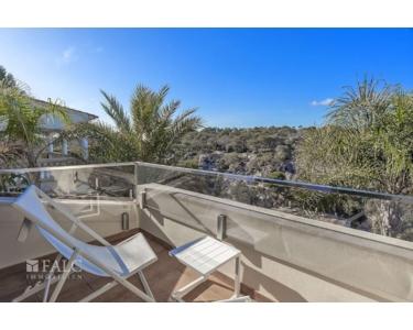 Drei Terrassen verteilen sich harmonisch über das Grundstück und schaffen sonnige und schattige Wohlfühloasen. Der Whirlpool mit Fernblick, ganz ohne Chemikalien beheizt, lädt zu Wellnessmomenten bei bis zu 28 Grad ein. Der komplett neu gestaltete tropische Garten mit Palmen, automatischer Bewässerung, neuen Pflanzen und beleuchtetem Gehweg verwandelt das Grundstück bei Nacht in ein mediterranes Paradies.