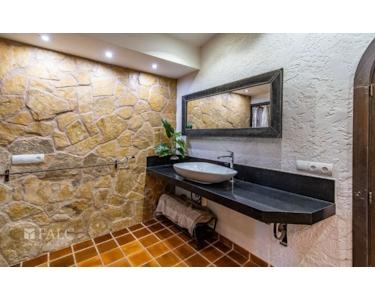 Zur Ausstattung zählen unter anderem doppelt verglaste Aluminiumfenster, Fensterbänke aus Holz, Einbauschränke, traditionelle Terrakotta-Fliesen, Holzbalkendecken, Natursteinverkleidung, Gaszentralheizung, vorinstallierte Klimaanlage, Videoalarmanlage mit Gegensprechanlage, Markisen, ein elektrisches Zufahrtstor und vieles mehr. Auf dem Grundstück stehen zudem mindestens zehn Außenstellplätze zur Verfügung.