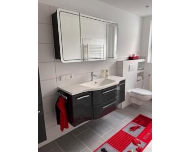 Im Erdgeschoß gehen Sie über die Diele in das neue wunderschöne Hauptbad, welches nicht nur über eine Abluftanlage, sondern auch über drei Heizmöglichkeiten verfügt: elektrische Fußbodenheizung, Heizkörper an der Wand und einen Handtuchhheizkörper.