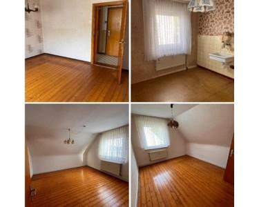 Das 'alte' Haus Nr. 2 wurde ca. 1957 erbaut, 4-5 Zimmer bei ca. 102,4 qm WFL und ca. 46,57 qm NFL, Gesamt ca. 148,97 qm mit noch relativ schönen Holzfussböden, jedoch sind die Bäder, Türen und Elektrik vorrangig renovierungswürdig und das Haus bietet viel Potential. Das alte Dach von 1957 wurde im Jahre 1981 aufgrund des Anbaus von Haus Nr. 1 vollständig ersetzt.