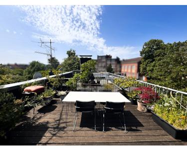 •Die schön gestaltete, große Dachterrasse wird von den Mietparteien gemeinsam genutzt.