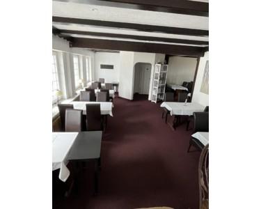 Sie betreten den in drei Teile gegliederten Gastraum über einen kleinen Vorflur. Neben den beiden Hauptteilen, in denen bis zu 80 Kunden Platz finden, kann ein gemütliches "Séparée" für Intimität sorgen. Dreh- und Wendepunkt des Personals ist der an den Gastraum angrenzende offene Duchgang zur Bar sowie der Küche. Beides ist voll ausgestattet und könnte nach erfolgter Reinigung Morgen wieder den Betrieb aufnehmen. Die Küche verfügt über jeweils einen Kochbereich, Zubereitungsraum, Lagerraum, Kühlraum sowie einen direkten Zugang zu der Unterkellerung. Es gibt zudem jeweils zwei hell und zeitlos gehaltene Damen- und Herren-WC Einrichtungen. Eine befindet sich im unteren Gastraum und die zweite im Übergang zu dem Außenbereich.