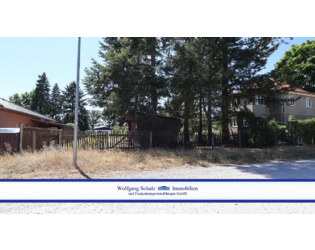 Dieses Baugrundstück ist derzeit noch mit zwei Wochenendlauben sowie einem Schuppen bebaut. Alle größeren Bäume befinden sich auf der Nordseite des Grundstückes. Gemäß den Vorgaben der Gemeinde eignet sich das Grundstück vorzüglich zur Bebauung mit einem freistehenden Einfamilienhaus, welches sich nach § 34 BauGB in die Nachbarschaft optisch und auch von der Größe einfügen müssen.