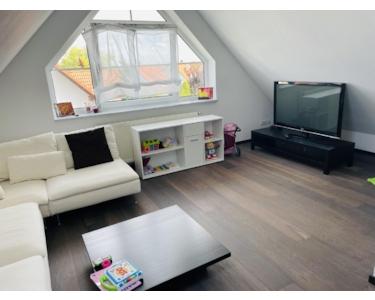 Im ausgebauten Dachgeschoss befindet sich ein weiteres Zimmer, das sich ideal als Arbeits- oder Gästezimmer nutzen lässt. Hier ist ebenfalls hochwertiges Parkett verlegt. Wasseranschlüsse sind hier sogar auch vorhanden.