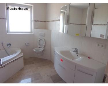 Es werden zwei hochwertige Bäder installiert. Das Badezimmer im Erdgeschoss verfügt über die folgende Ausstattung: großzügige bodentiefe Dusche, Wannenanlage mit Ablageflächen, Doppelwaschtisch mit Halbsäulen (Ablageflächen), Hänge WC & Bidet, Handtuchheizkörper, elegante Armaturen & Elemente, deckenhohe Verfliesung. Außer der Badewanne ist die Ausstattung im Badezimmer im Dachgeschoss identisch. Das Gäste WC im Erdgeschoss verfügt über die folgende Ausstattung:
