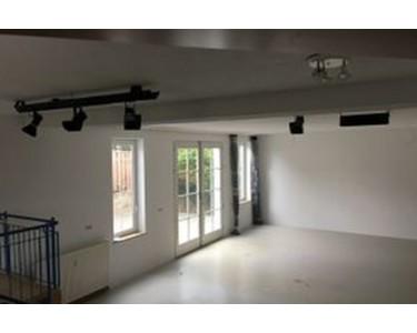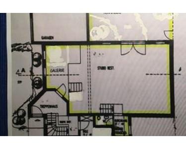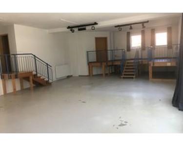 Vermietet wird ein Studio mit knapp 100 qm Fläche, samt Galerie, WC und Küchenbereich.