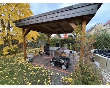 Das ca. 410 m² große Grundstück bietet eine echte Gartenidylle mit ausreichend Platz für die ganze Familie. Der rückwärtige Garten lädt zur Erholung ein – genießen Sie hier die Sonne oder gesellige Stunden mit Ihren Liebsten. Highlight des Gartens sind ein unterirdischer, im Dunkeln beleuchteter Pool, ein stimmungsvoll illuminiertes Pavillon, ein Brunnen, eine Regenwasserzisterne sowie Solarplatten. Zusätzlich ist der Garten mit einem Rasensprenkler ausgestattet, der bequem per Fernbedienung gesteuert werden kann. Ergänzend zur Doppelhaushälfte steht eine geräumige, ca. 50 m² große Garage zur Verfügung, ideal für Fahrzeuge, Fahrräder, Gartengeräte oder als Hobbyraum/Werkstatt. Ein weiterer Außenstellplatz rundet das Angebot ab.