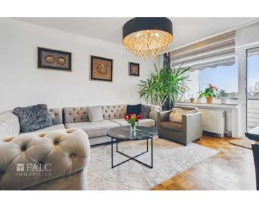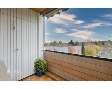 Der Mittelpunkt der Wohnung ist der weitläufige Wohnbereich mit schönem Parkettboden und direktem Zugang zum nach Süden ausgerichteten Balkon. Dieser bietet dank der integrierten Abstellkammer zusätzlichen Stauraum und lädt zu sonnigen Stunden im Freien ein.
