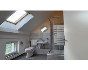 Es handelt sich um eine Doppelhaushälfte mit insgesamt 183 m² Wohnfläche aufgeteilt auf das erste und zweite Obergeschoss. Der Dachboden ist begehbar aber nicht ausgebaut. Erstes und Zweites Geschoss können selbständig genutzt werden.