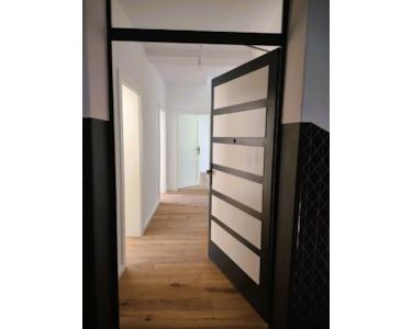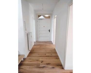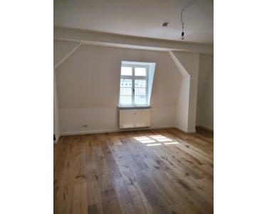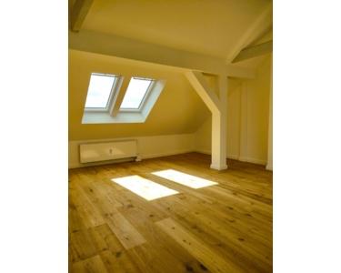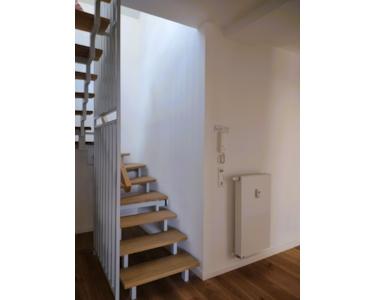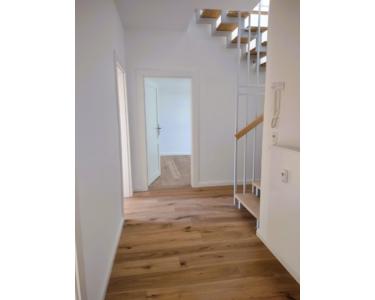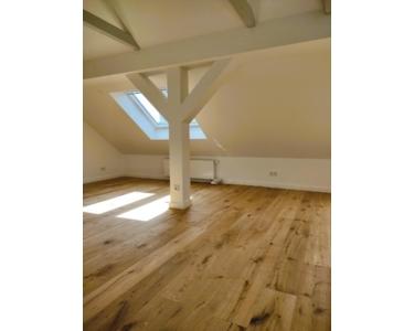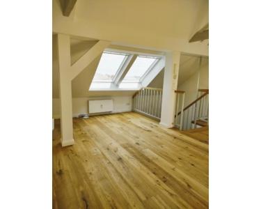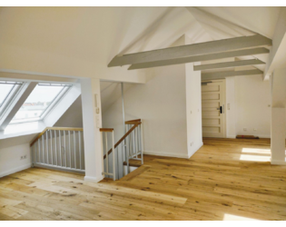 Die frisch ausgebaute Dachgeschosswohnung erstreckt sich über die zwei oberen Etagen des mittleren Hauses und verfügt über 104,75 m² Wohnfläche gemäß WoFlVO (128,91 m² Nutzfläche).