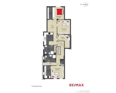 Im Dachgeschoss befinden sich die Wohneinheiten 3 und 4 befinden. Die kompakte mit ca. 37m² große Wohneinheit 3, aufgeteilt in ein Wohnzimmer, Küche und Tageslichtbad, eignet sich ideal für Einzelpersonen oder Pendler.