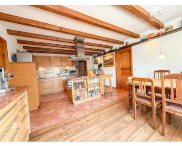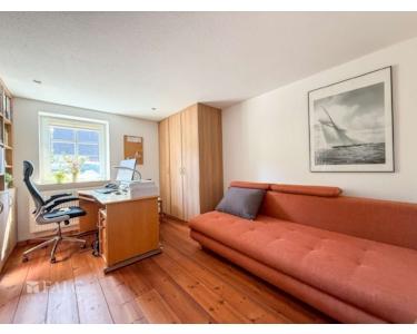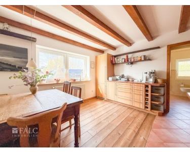 Schon beim Betreten des Hauses spüren Sie die besondere Atmosphäre: Warme Holzböden, sichtbare Balken und ein durchdachter Grundriss schaffen ein behagliches Zuhause mit Stil und Funktionalität. Die großzügige Wohnküche mit Kochinsel und Kamin ist das Herzstück des Hauses – hier trifft Gemütlichkeit auf modernes Design. Direkt angrenzend befinden sich ein helles Schlafzimmer und ein elegantes Badezimmer mit Dusche, Badewanne, WC und Fenster. Zusätzlich stehen Ihnen im Erdgeschoss ein separates Arbeitszimmer zur Verfügung.