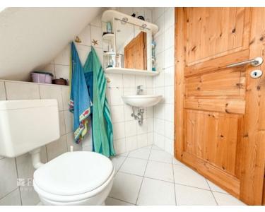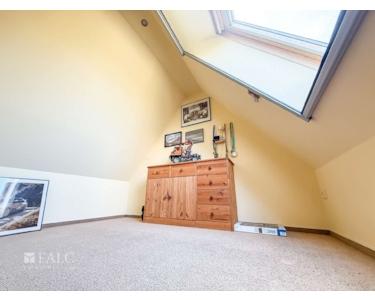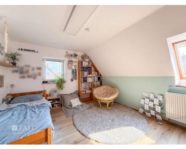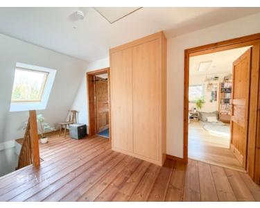 Im Obergeschoss befinden sich zwei liebevoll gestaltete Kinderzimmer. Eines davon bietet sogar Zugang zum ausgebauten Spitzboden – ideal als Spielbereich oder gemütlicher Rückzugsort. Ein großzügiges Wohnzimmer mit Kamin und lichtdurchfluteten Fenstern schafft eine behagliche Atmosphäre. Ein zusätzliches Badezimmer mit Dusche rundet das Raumangebot ab – perfekt für ein harmonisches Familienleben mit ausreichend Freiraum für alle.