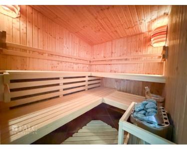 -Separater Raum: Wellnessoase mit Sauna, Dusche, Kamin und Sitzecke