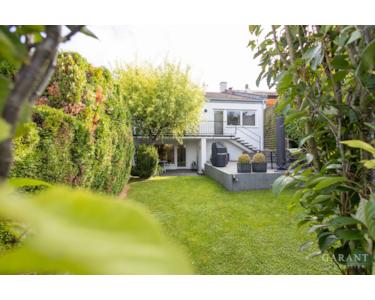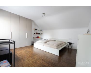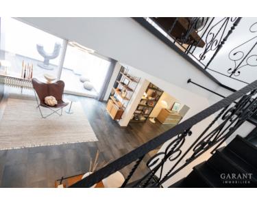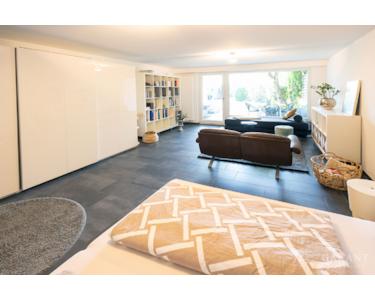 Besonders beeindruckend ist die offene Galerie, welche luftige Sichtachsen durch das Haus und in den Garten schafft. Ein heller Lichthof im Erdgeschoss sorgt für zusätzliche Weite und absolute Privatsphäre. Das Haus verfügt über insgesamt ein Schlafzimmer, ein Gästezimmer sowie eine charmante, ebenfalls sanierte, Gästewohnung im Untergeschoss mit eigenem Gartenbereich.