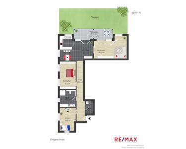 Die 4-Raumwohung im Erdgeschoss ist wie folgt aufgeteilt: