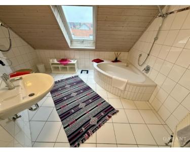 Im Dachgeschoss finden Sie aktuell zwei Gästezimmer mit zwei großen Badezimmern. Hier besteht die Möglichkeit, die Räumlichkeiten zu einer Wohnung für die Betreiber oder zu einer Ferienwohnung umzubauen.