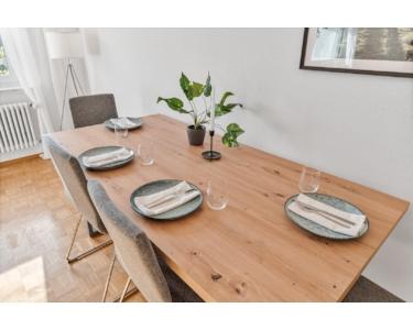 Helles Wohn- und Esszimmer mit Zugang zur Terrasse