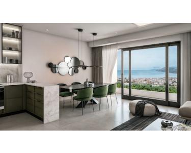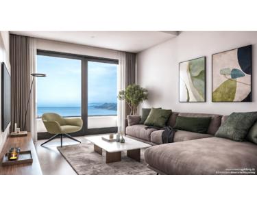 Die Wohnungen sind durchdacht geplant: klare Grundrisse, helle Räume und bodentiefe Aluminium-Fenster mit Four-Season-Verglasung schaffen eine hochwertige Wohnatmosphäre und sorgen das ganze Jahr über für ein angenehmes Raumklima. Jedes Appartement verfügt über einen privaten Balkon mit Meerblick.