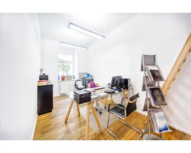 Die angebotene Bürofläche mit einer Größe von ca. 116,70 m² erstreckt sich im Erdgeschoss eines Architektenhauses aus dem Jahre 1901 (deutsche Renaissance).