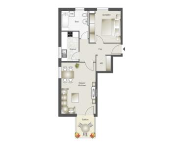 # 2-Zimmer, Küche, Bad