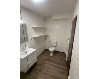 Das Badezimmer wurde frisch modernisiert und verfügt über eine große, begehbare Dusche.