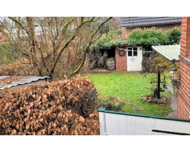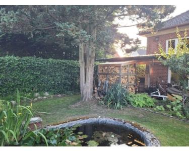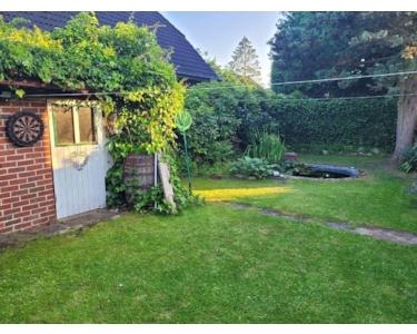 Neben dem Wohnhaus gehört ein Geräteschuppen zum Anwesen. Der kleine Garten mit Teich bietet zahlreiche Nutzungsmöglichkeiten – sei es zum Spielen, Gärtnern oder einfach als Rückzugsort zum Entspannen.