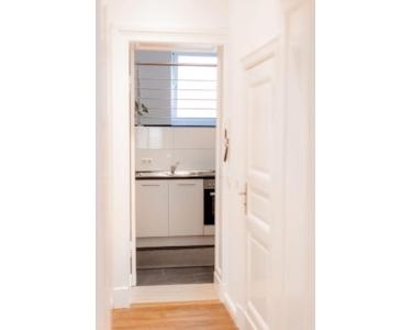 Die 36,02 m2 große Hochparterre-Wohnung überzeugt mit ihrem klassischen Altbaucharme. Sie umfasst einen kompakten Eingangsbereich, ein helles Wohn-/Schlafzimmer, eine separate voll ausgestattete Einbauküche mit einer Galerie sowie ein modernes Duschbad.